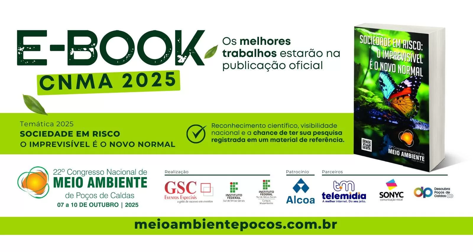 Caminhando para a vigésima terceira edição, o Congresso Nacional de Meio Ambiente de Poços de Caldas será realizado nos dias 22 a 25 de setembro de 2026.